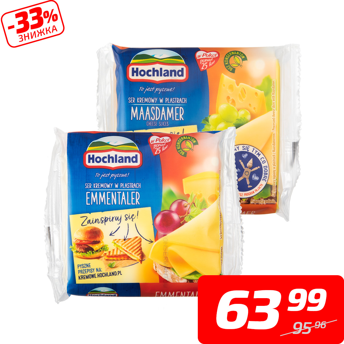 Сир плавлений в асортименті, 40-52%, скибочки, ТМ «Хохланд», 130 г