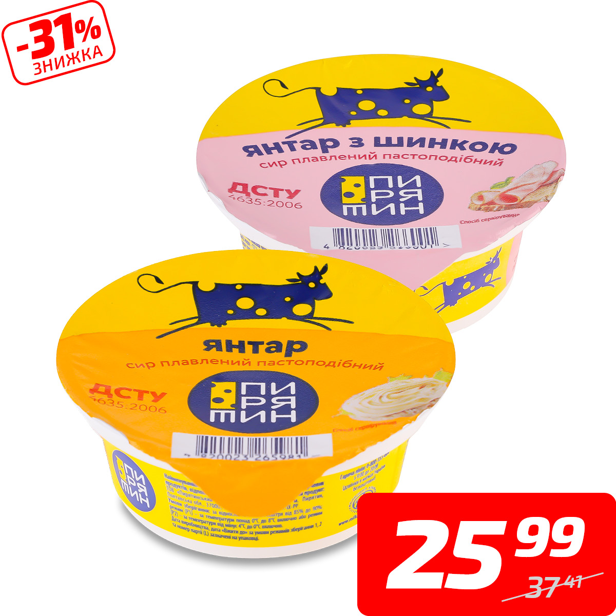 Сир плавлений в асортименті, 45-60%, ТМ «Пирятин», 90 г