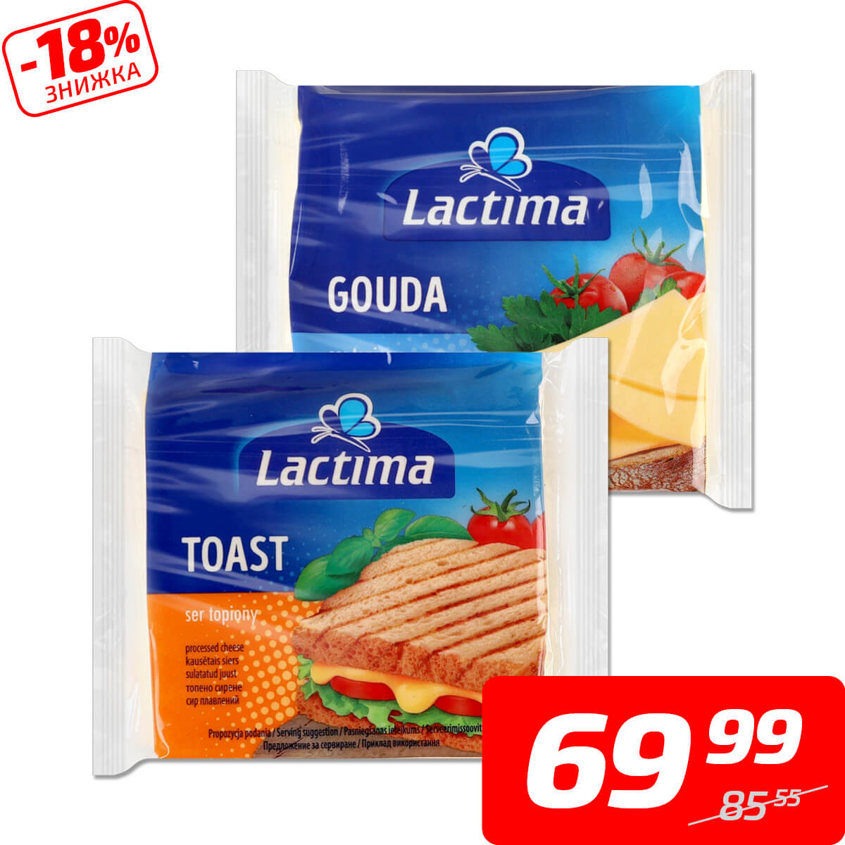 Сир плавлений в асортименті, скибками, 36,2%, ТМ «Lactima», 130 г