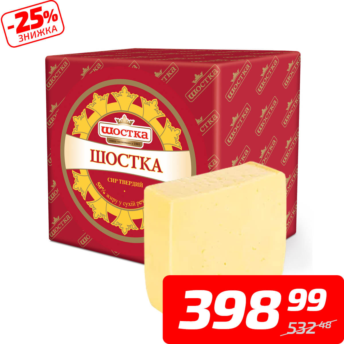 Сир «Шостка», 50%, ТМ «Шостка», 1 кг