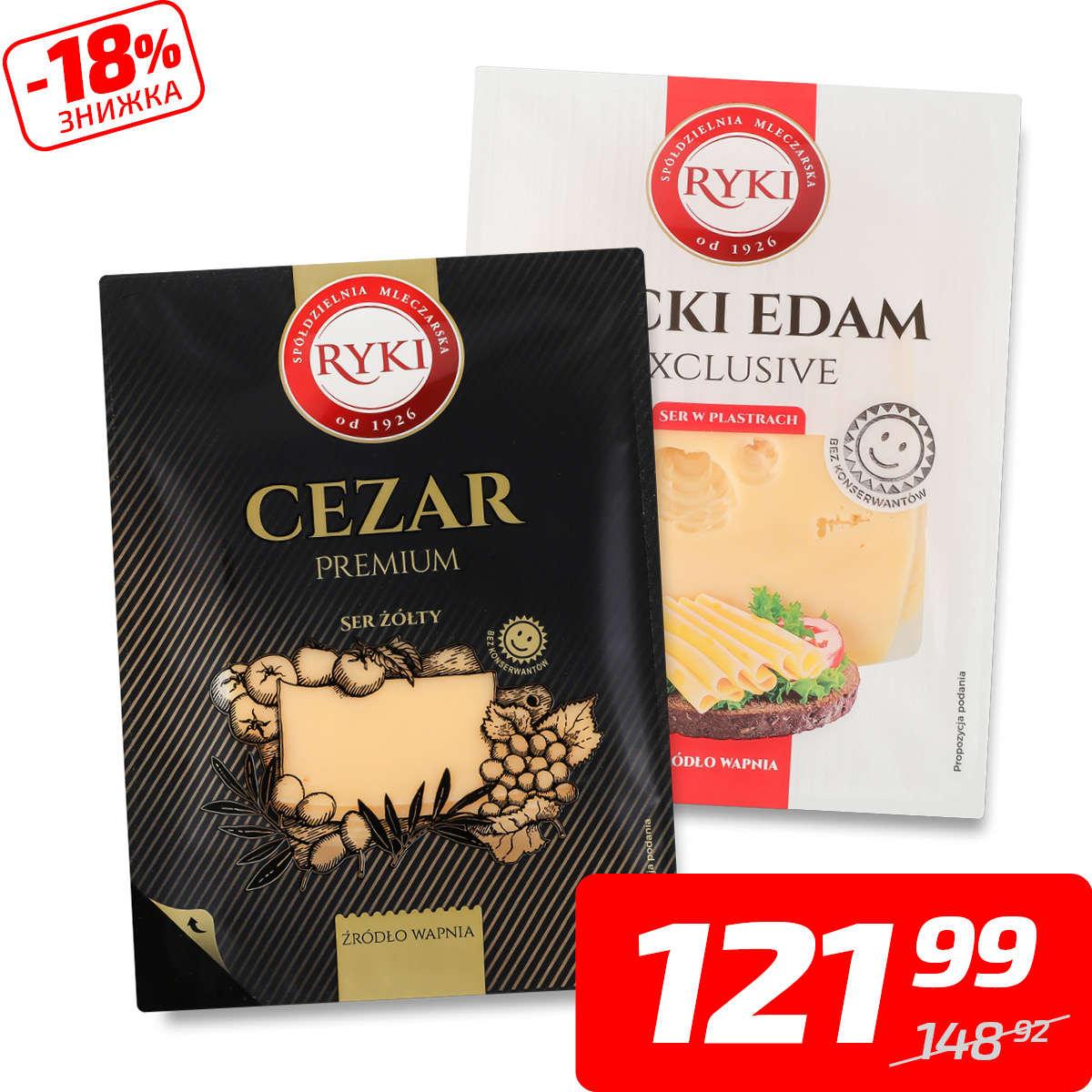 Сир в асортименті, 45-50%, нарізка, ТМ «Ryki», 300 г