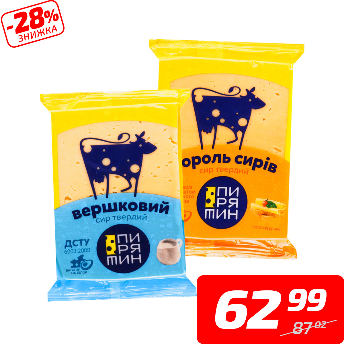 Сир в асортименті, 45-50%, ТМ «Пирятин», 160 г