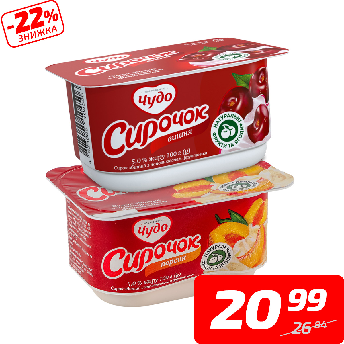 Сирочок з наповнювачем в асортименті, 5%, ТМ «Чудо», 100 г