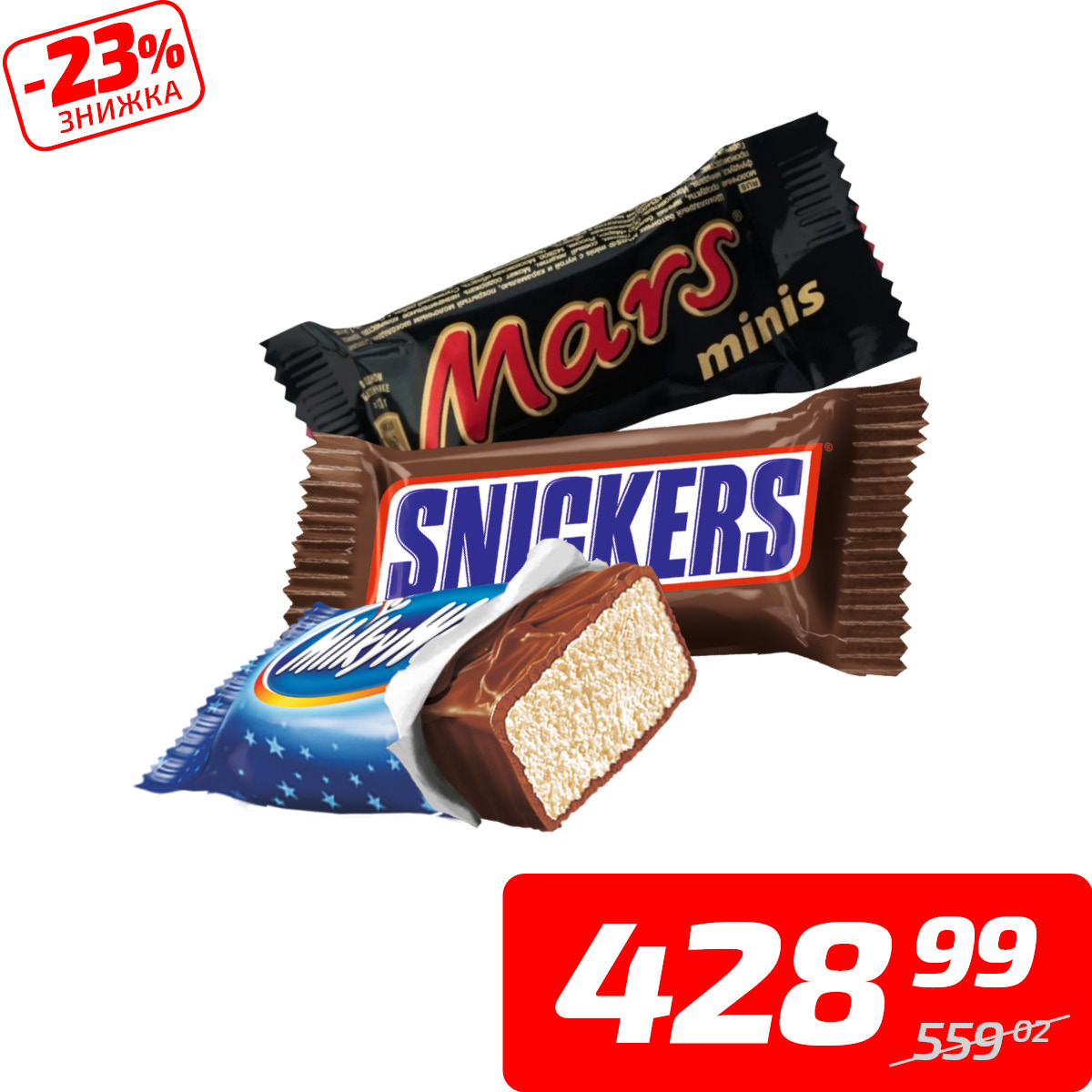 Цукерки «Minis», ТМ «Milky Way», «Mars», «Twix» або «Snickers», 1 кг