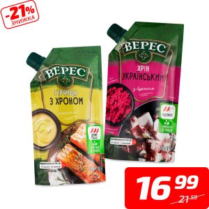 Гірчиця або хрін в асортименті, ТМ «Верес», 120-130 г