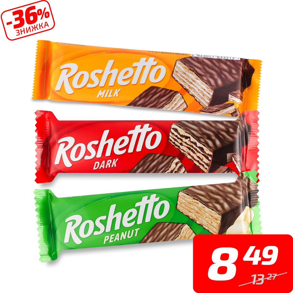 Вафлі «Roshetto» в асортименті, ТМ «Roshen», 34 г