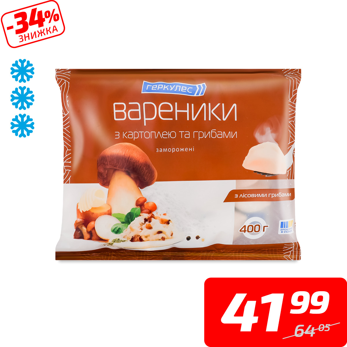 Вареники з картоплею та грибами, ТМ «Геркулес», 400 г