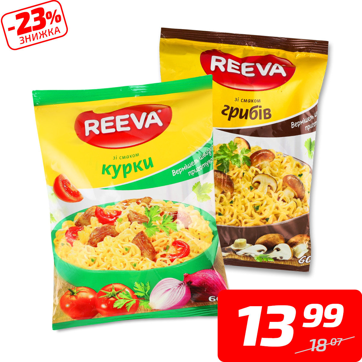 Вермішель швидкого приготування в асортименті, ТМ «Reeva», 60 г