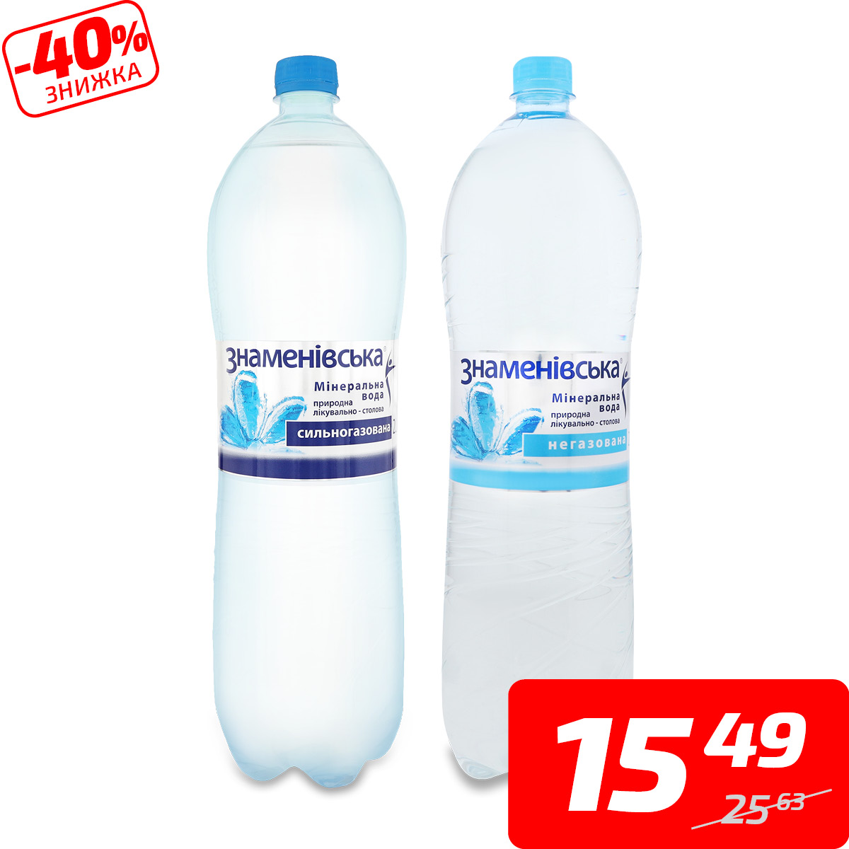 Вода мінеральна газована або негазована, ТМ «Знаменівська», 2 л