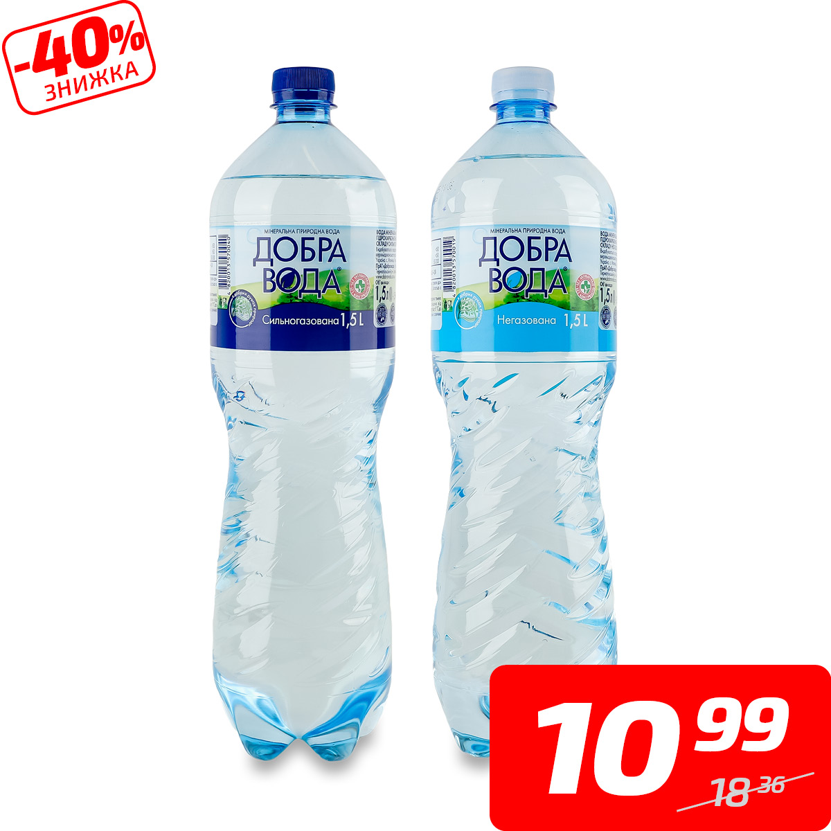 Вода мінеральна негазована або сильногазована, ТМ «Добра вода», 1,5 л