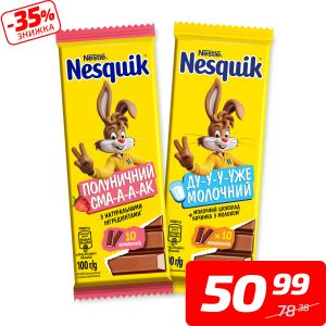 Шоколад молочний з полуничною начинкою або молоком, ТМ «Несквік», 100 г