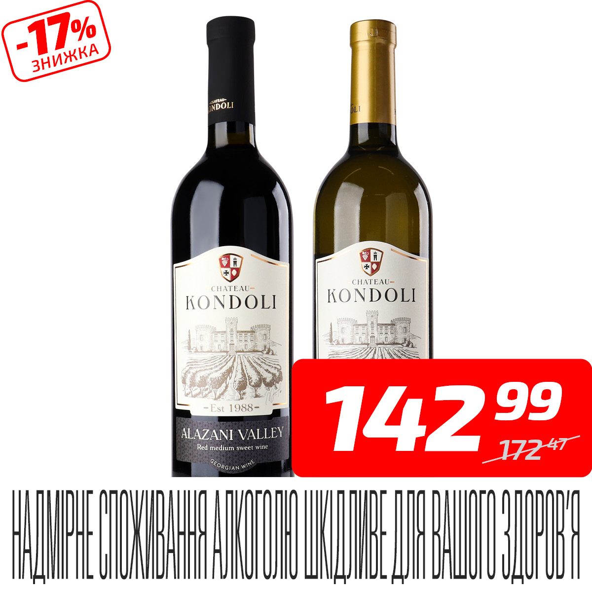 Вино «Alazani Valley», червоне або біле, 11-13%, ТМ «Chateau Kondoli», 0,75 л