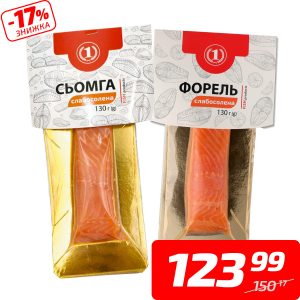 Сьомга або форель, с/с, філе-шматок на шкірі, ТМ «1», 130 г