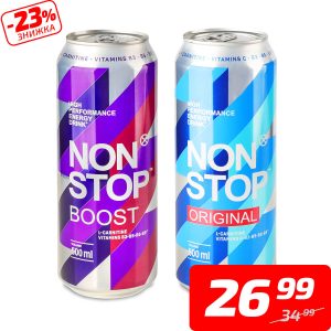 Напій енергетичний, безалкогольний, в асортименті, ТМ «Нон Стоп», 0,5 л